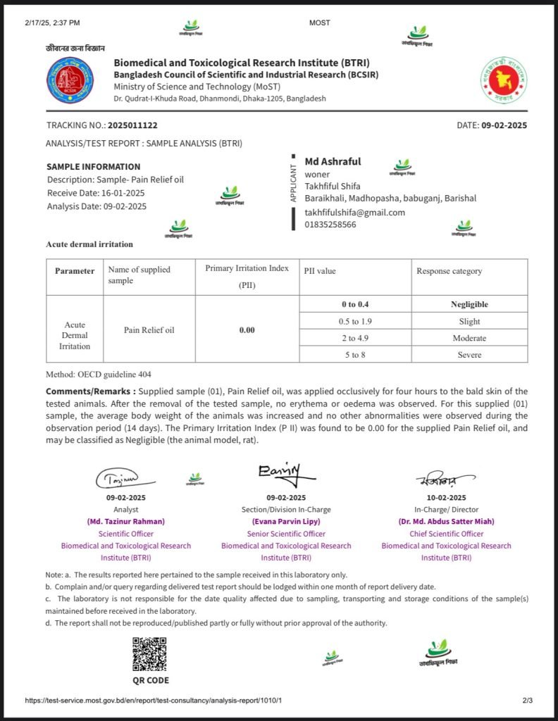 তাখফিফুল শিফা তেল হোমমেড একটি প্রোডাক্ট তাই কোন পার্শ্ব প্রতিক্রিয়া ছাড়াই ব্য-থা দূর করবে